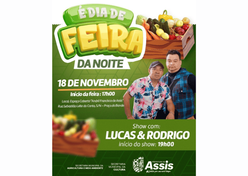 A tradicional Feira da Noite de Assis acontece nesta terça-feira, 18 de novembro, no Espaço Coberto André Francisco de Assis, na Praça da Bandeira, com início às 17h.