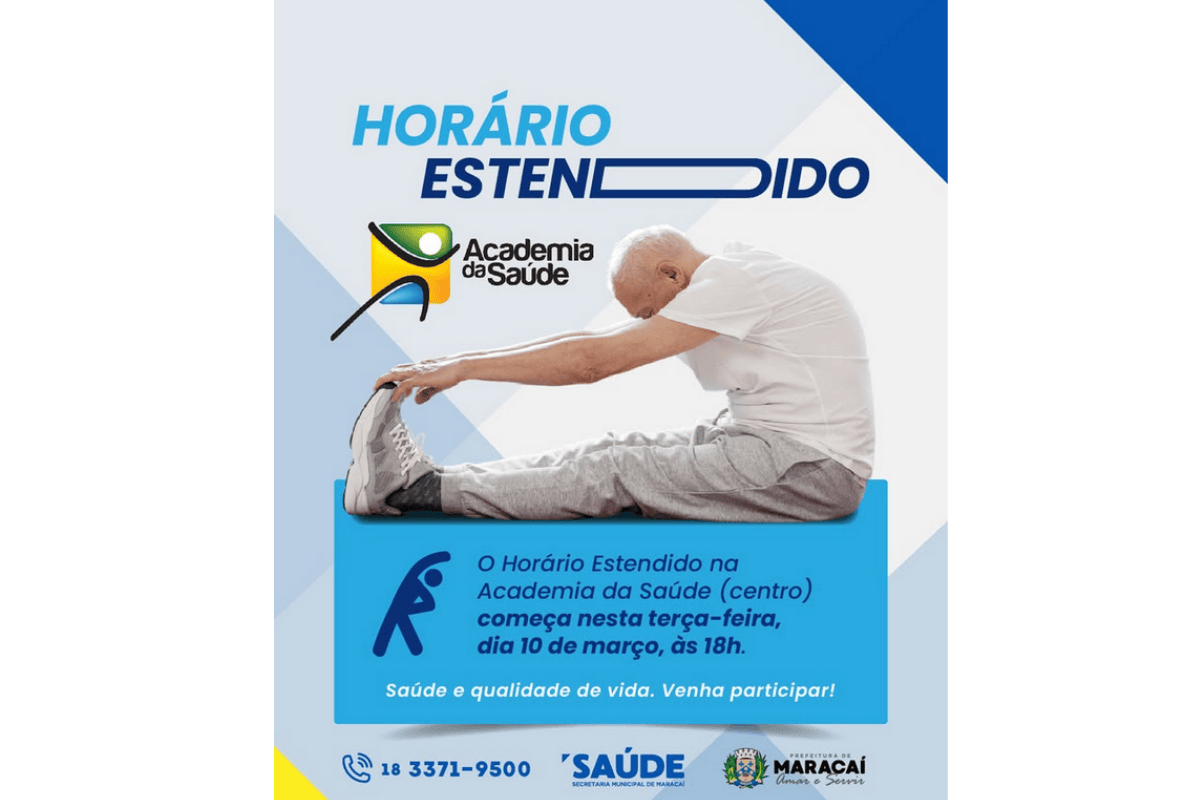 A Academia da Saúde de Maracaí, localizada na região central do município, passou a contar com horário estendido a partir desta semana. A ampliação das atividades começou na terça-feira, 10 de março, com início das práticas às 18h.