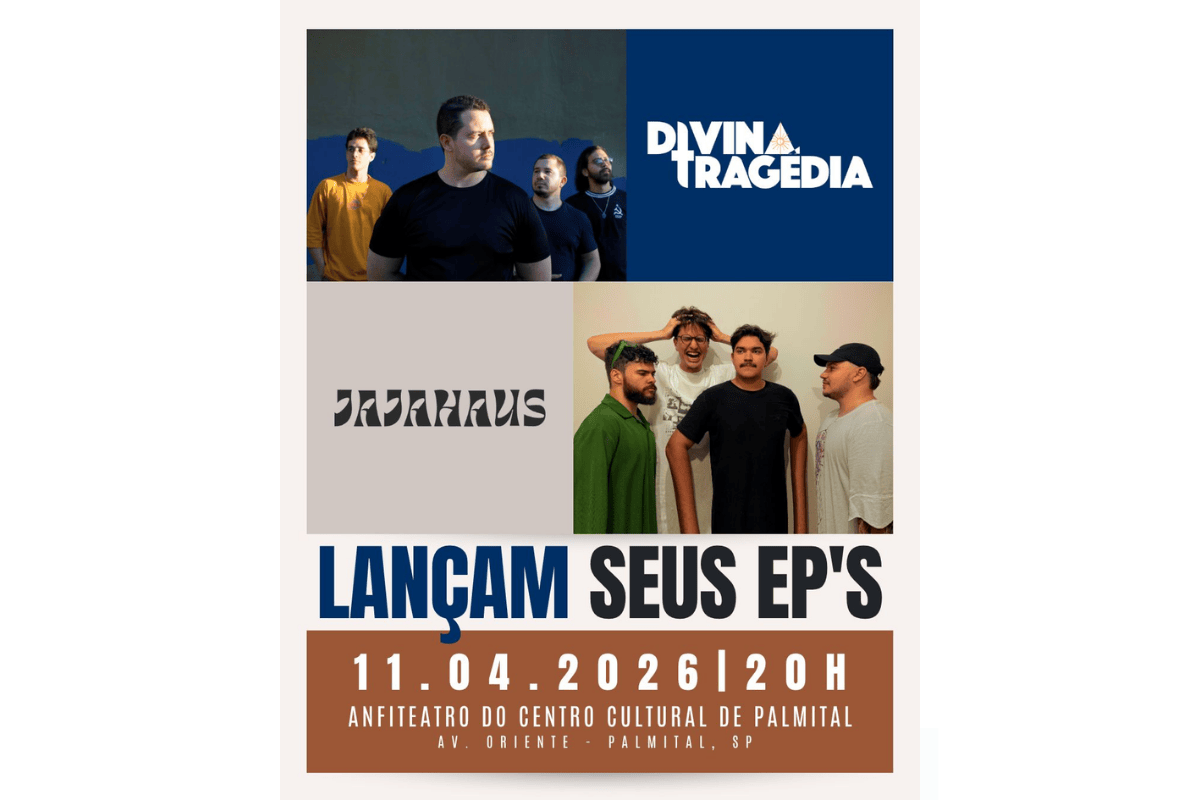 Sobem ao palco a banda palmitalense Divina Tragédia, que apresenta seu primeiro EP, Renascença, e a assisense Jajahaus, que lança o trabalho Suahajaj. Mais do que um show, o evento representa um momento simbólico na trajetória dos grupos, que constroem suas carreiras de forma independente, com produção autoral e identidade própria.