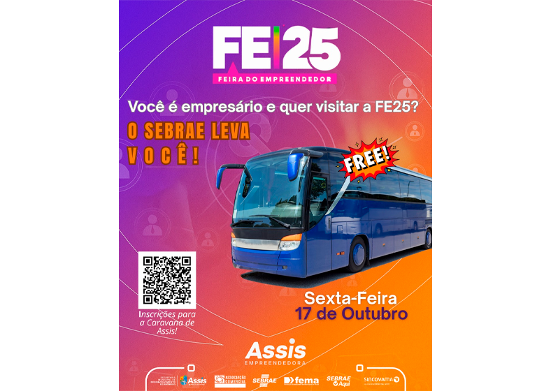 Na sexta-feira, dia 17 de outubro, uma caravana oficial gratuita partirá de Assis em direção ao evento. Para participar, é necessário ter mais de 18 anos, possuir CNPJ ativo e realizar a inscrição até 4 de outubro neste link. As vagas são limitadas e os selecionados receberão orientações por telefone, além de assinar um termo de compromisso. Caso a demanda ultrapasse o número de vagas disponíveis, será criada uma lista de espera.