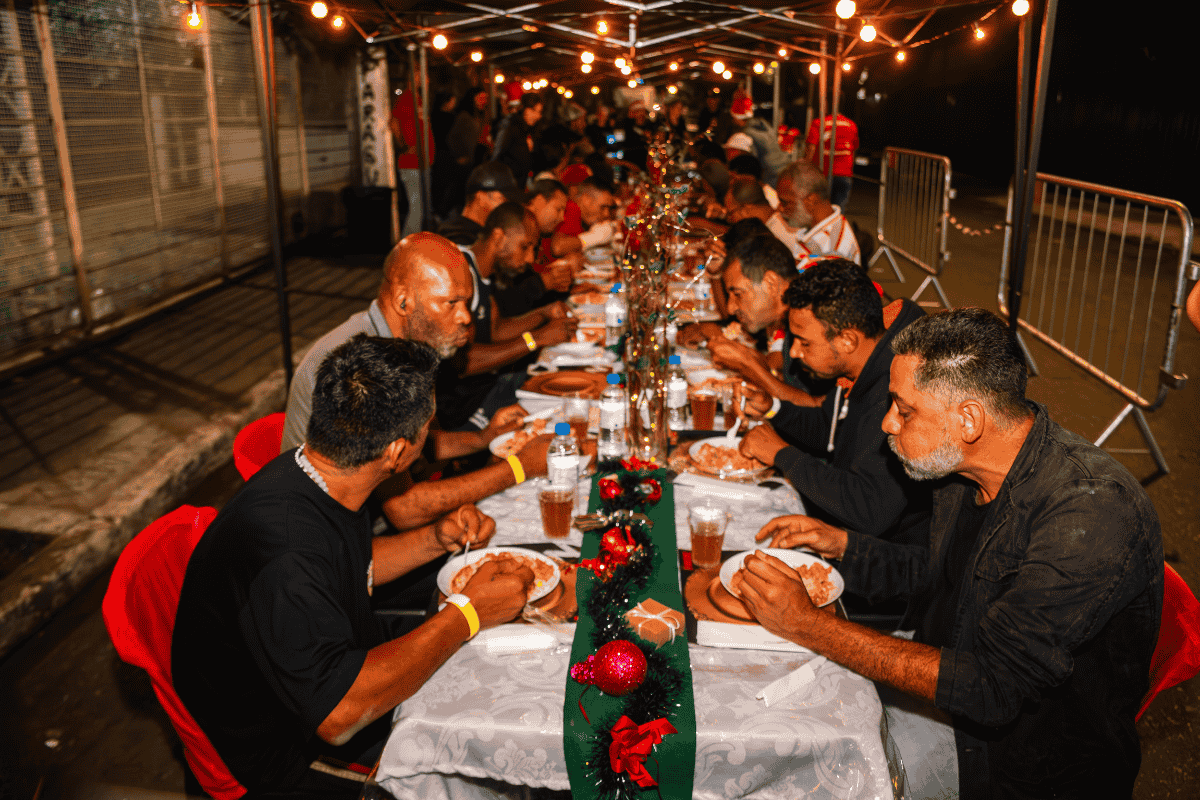 Segundo a ONG, as refeições foram servidas diretamente no prato por voluntários da instituição e de empresas parceiras, em ambientes preparados especialmente para a data. A proposta foi oferecer não apenas alimentação, mas também convivência, escuta e cuidado em um período simbólico como o Natal.