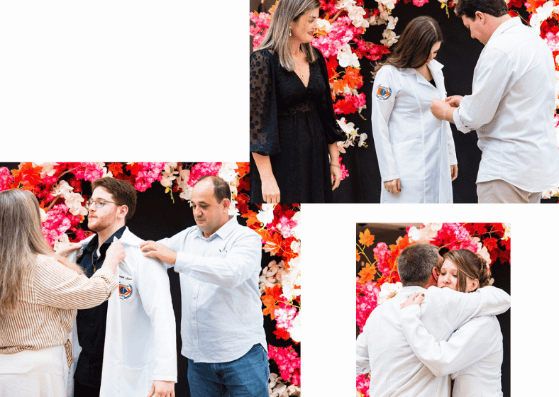 A celebração reuniu professores e familiares, que acompanharam com emoção a entrega do jaleco branco realizada pelos padrinhos de cada estudante. O gesto, tradicional no curso, representa responsabilidade, compromisso ético e dedicação ao cuidado com a vida humana, valores fundamentais no exercício da profissão médica.