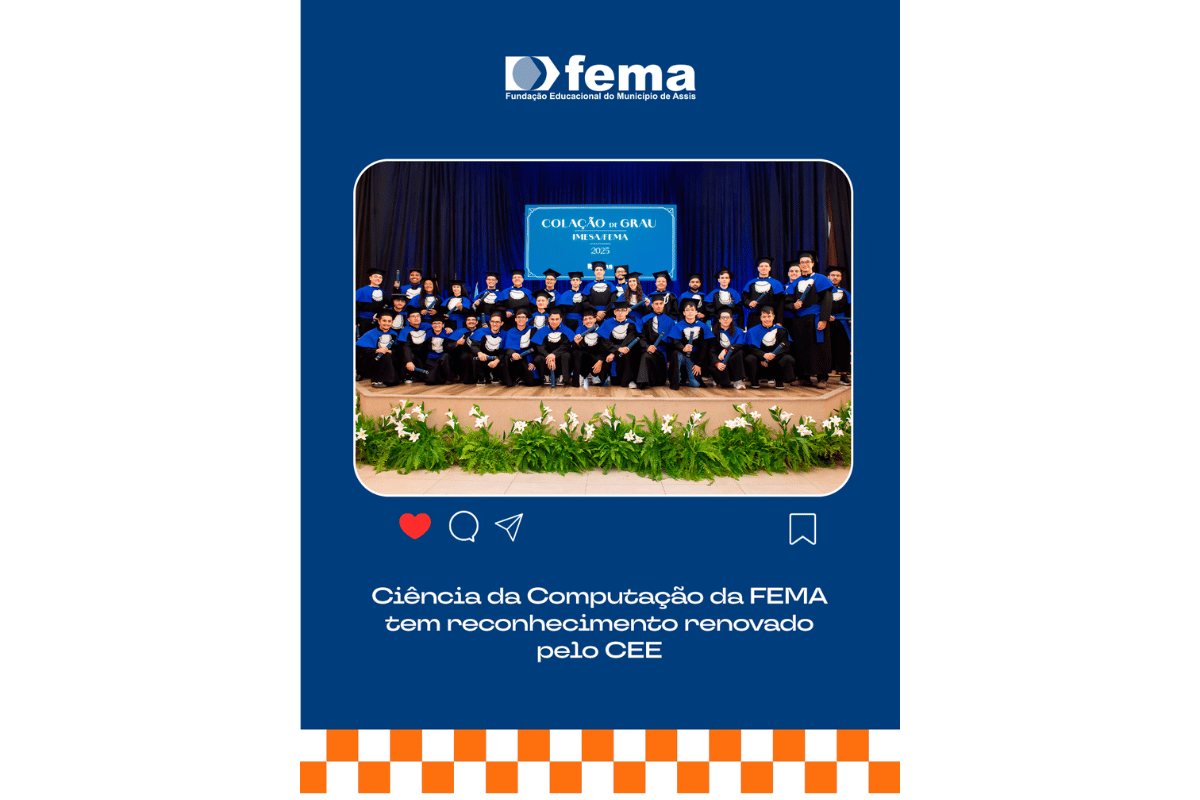 O curso de Bacharelado em Ciência da Computação da Fundação Educacional do Município de Assis, FEMA, teve o reconhecimento renovado pelo Conselho Estadual de Educação, CEE, por mais quatro anos. A decisão confirma a regularidade e a avaliação positiva do projeto pedagógico, da estrutura acadêmica e do corpo docente da instituição.