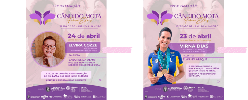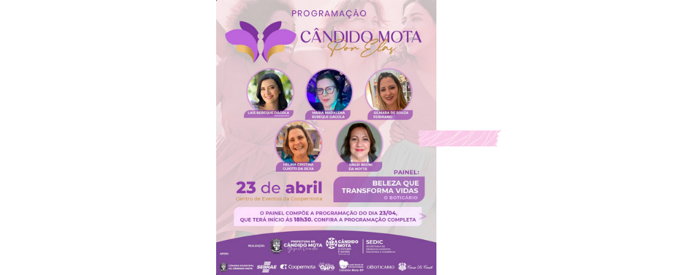 Cândido Mota se prepara para receber, nesta semana, a edição 2026 do congresso “Cândido Mota por Elas”, que será realizado nos dias 23 e 24 de abril, no Centro de Eventos da Coopermota. Com o tema “Liberdade de Janeiro a Janeiro”, a iniciativa propõe dois dias de atividades voltadas ao fortalecimento do protagonismo feminino, reunindo conteúdo, experiências e integração comunitária.