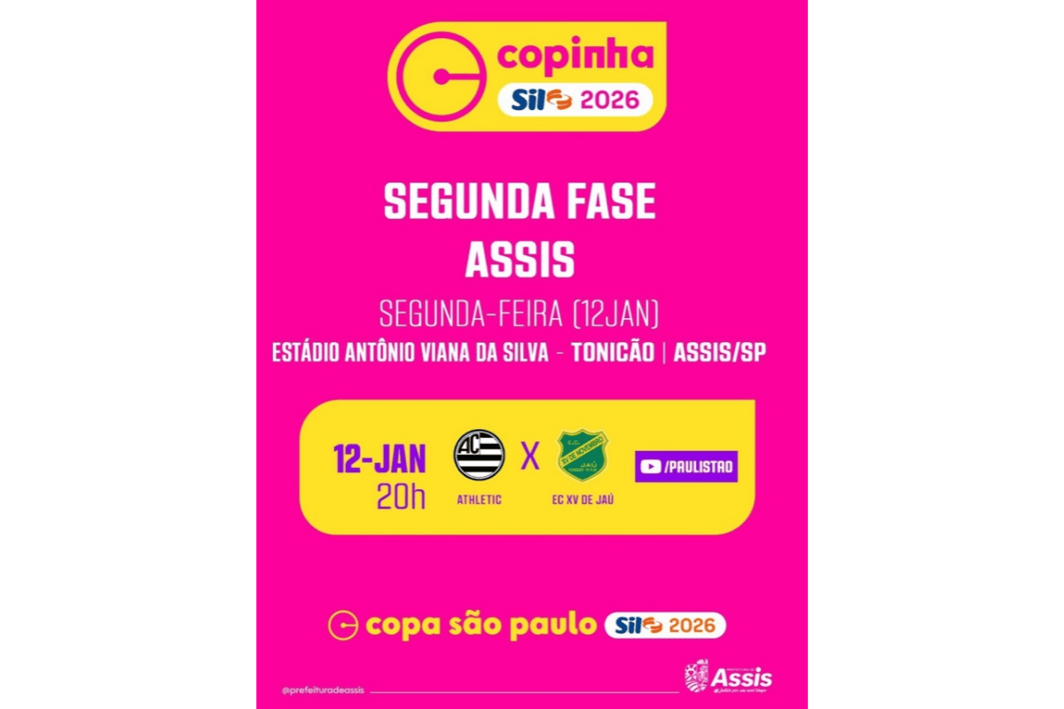 A Copa São Paulo de Futebol Júnior 2026 segue movimentando Assis nesta segunda-feira, 12 de janeiro, com a disputa da segunda fase da competição. A partir das 20h, o Estádio Antônio Viana da Silva, o Tonicão, recebe o confronto eliminatório entre Athletic Club e EC XV de Jaú, em partida válida pelo mata-mata do torneio.