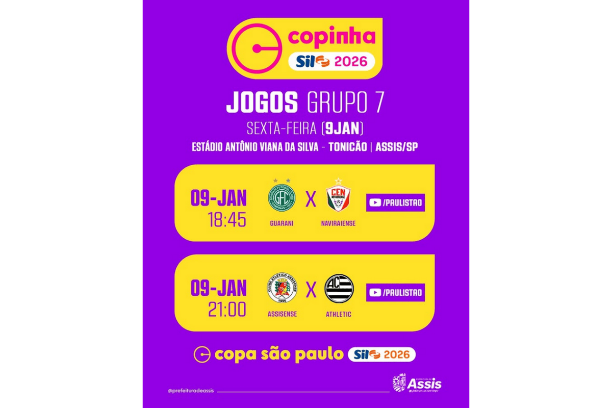 A Copinha Sicredi 2026 segue movimentando Assis nesta sexta-feira, 9 de janeiro, com a disputa da terceira rodada do Grupo 7, no Estádio Antônio Viana da Silva, o Tonicão. A cidade é uma das sedes da principal competição de base do futebol brasileiro e recebe dois confrontos que prometem forte presença do público e clima de decisão.