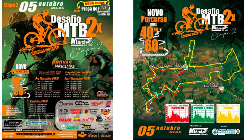 Neste domingo, 5 de outubro, Cândido Mota recebe a 2ª etapa do Desafio Mountain Bike 2x, evento que promete reunir ciclistas da região em uma manhã de esporte e integração. A concentração será a partir das 6h30, na Praça do Fórum, e a largada está marcada para as 8h.