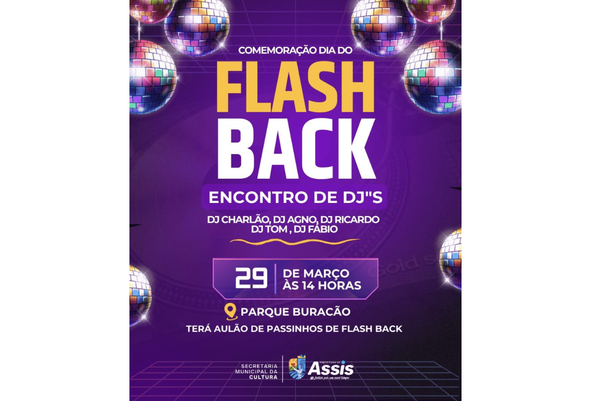 Durante a tarde, o Parque Buracão recebe a comemoração do Dia do Flashback, com início às 14h. O evento reúne DJs conhecidos do público local, como DJ Charlão, DJ Agno, DJ Ricardo, DJ Tom e DJ Fábio, em uma proposta voltada à valorização de sucessos que marcaram época. A programação inclui ainda aula de passinhos de flashback, aberta ao público.