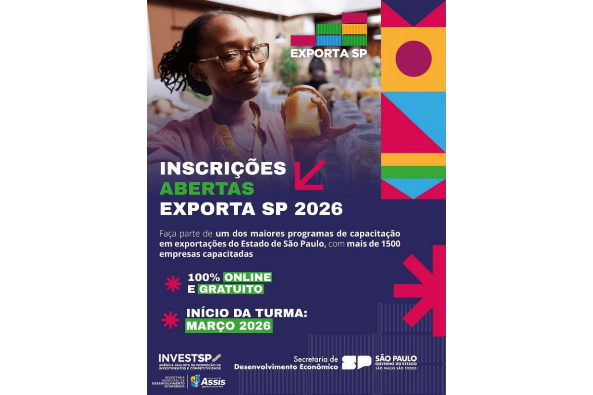 Empresários e empreendedores de Assis que desejam ampliar seus negócios para o mercado internacional têm uma nova oportunidade de capacitação em 2026. A cidade passa a integrar o programa Exporta SP, iniciativa da InvestSP, Agência Paulista de Promoção de Investimentos e Competitividade, em parceria com a Secretaria Municipal de Desenvolvimento Econômico, que oferece curso gratuito e totalmente online voltado à exportação.