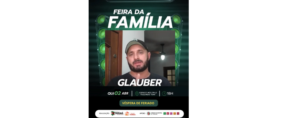 Feira da Família em Tarumã terá show de Glauber na véspera de feriado