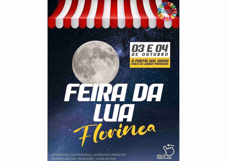 A Prefeitura de Florínea confirmou a realização da Feira da Lua nos dias 3 e 4 de outubro, a partir das 19h, na Praça do Jardim Primavera. O evento, que já se tornou tradição no calendário cultural da cidade, vai reunir música, gastronomia, artesanato e recreação, fortalecendo a identidade local e o encontro da comunidade.
