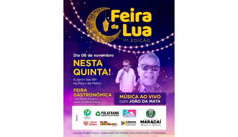 Organizada pela Prefeitura de Maracaí, com apoio da Câmara Municipal, da Secretaria Municipal de Saúde, do Espaço Artesanato Solidário e de parceiros locais, a Feira da Lua busca fortalecer o comércio, movimentar o turismo e oferecer lazer gratuito à população.