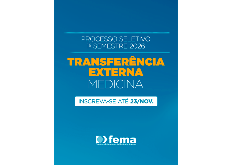 A Fundação Educacional do Município de Assis (FEMA) abriu inscrições para o processo seletivo de transferência externa do curso de Medicina, com ingresso previsto para o primeiro semestre de 2026. O prazo para participar vai até o dia 23 de novembro de 2025, e o edital está disponível no site oficial da instituição.