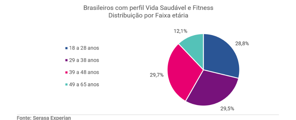 O recorte etário mostra que o interesse por bem-estar não se concentra apenas nos mais jovens, mas mantém distribuição equilibrada até os 48 anos, com leve predominância entre adultos de 39 a 48 anos.