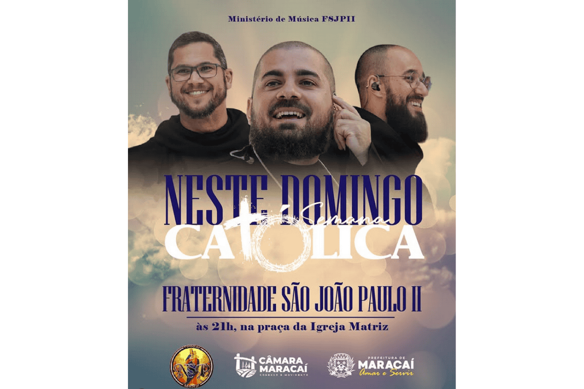 A programação da Semana Católica 2025 segue em Maracaí com uma atividade especial neste domingo, 7 de dezembro, às 21h, na Praça da Matriz, quando a Fraternidade São João Paulo II realiza uma apresentação aberta ao público. O encontro reforça a participação da comunidade nas celebrações e reúne fiéis para um momento de fé, música e espiritualidade.