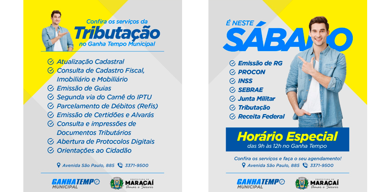 O Ganha Tempo reúne em um só local diversos serviços municipais e estaduais, oferecendo mais praticidade à população. O espaço está localizado na Avenida São Paulo, 885, e os atendimentos podem ser agendados pelo telefone: (18) 3371-9500.