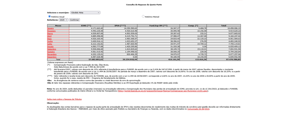 Com o último repasse efetuado nesta terça-feira, as prefeituras encerram 2025 com caixa reforçado e iniciam 2026 já com base concreta para projeções financeiras e definição de prioridades.