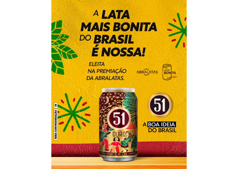 Com o título de Lata Mais Bonita do Brasil 2025, a Cachaça 51 consolida sua imagem como uma marca que une tradição e inovação, valorizando o design nacional, a arte popular e o compromisso com a sustentabilidade.