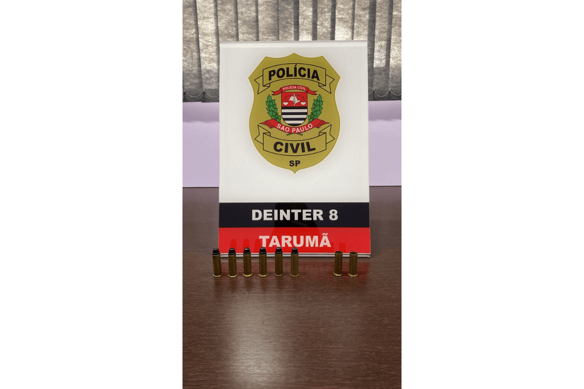 Durante o cumprimento das ordens judiciais, os policiais localizaram, na cozinha da residência investigada, um recipiente de vidro contendo oito munições de calibre .38, sendo parte delas íntegras e parte deflagradas. Questionado, o investigado, identificado pelas iniciais P.H.N.O., de 30 anos, declarou que as munições seriam remanescentes de um revólver que possuía anteriormente e que teria sido vendido.