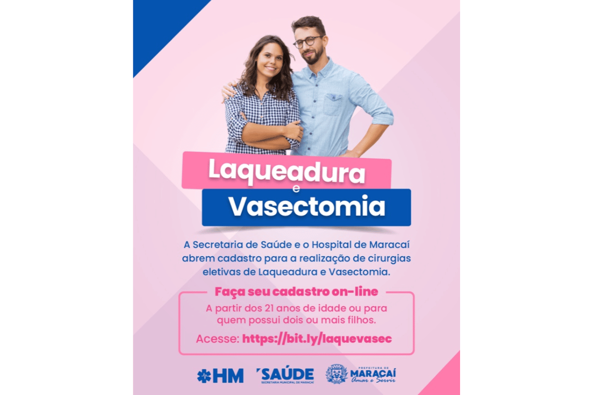 A Prefeitura de Maracaí, por meio da Secretaria Municipal de Saúde e do Hospital de Maracaí, abriu o cadastro para a realização de cirurgias eletivas de laqueadura e vasectomia no município. A iniciativa faz parte das ações de planejamento familiar e está disponível para moradores que atendam aos critérios estabelecidos pelo Sistema Único de Saúde (SUS).