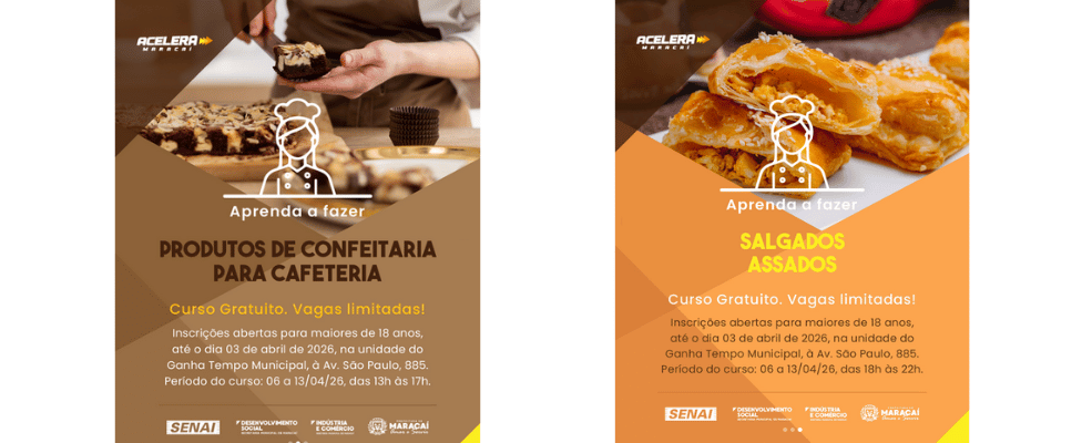 A Prefeitura de Maracaí está com inscrições abertas para novos cursos gratuitos de qualificação profissional nas áreas de confeitaria e produção de salgados assados. As oportunidades são destinadas a maiores de 18 anos e contam com vagas limitadas.