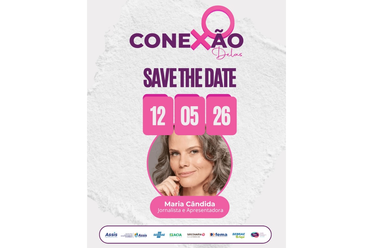 Assis já tem uma das principais atrações confirmadas para o Conexão Delas 2026. A jornalista e apresentadora Maria Cândida participará da segunda edição do evento, marcada para 12 de maio, terça-feira, às 19h, no salão de eventos da ACIA. Com inscrições gratuitas, o encontro reúne iniciativas voltadas ao empreendedorismo feminino, carreira, comportamento e fortalecimento do protagonismo das mulheres.