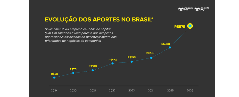Mercado Livre anuncia investimento recorde de R$ 57 bilhões no Brasil em 2026