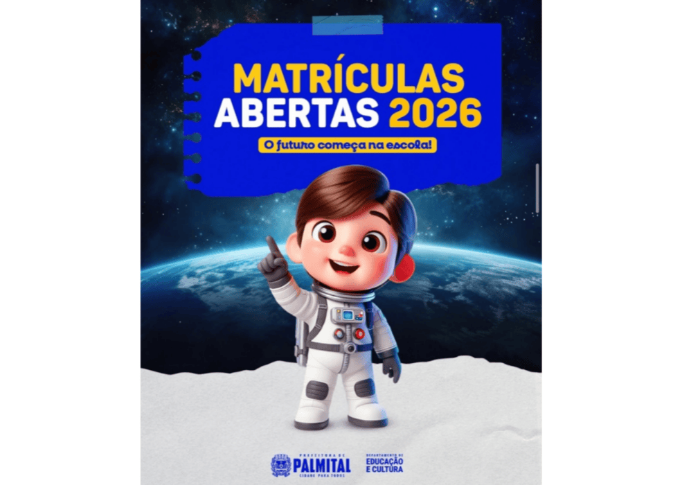 A Prefeitura de Palmital, por meio do Departamento de Educação e Cultura, informa que estão abertas as matrículas para o ano letivo de 2026 em todas as unidades da Rede Municipal de Ensino.