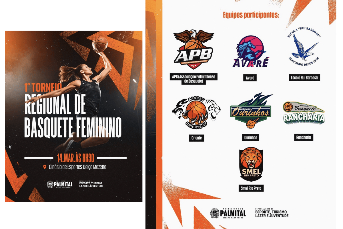 Palmital recebe neste sábado, 14 de março, a partir das 8h30, o 1º Torneio Regional de Basquete Feminino. O evento será realizado no Ginásio de Esportes Delço Mazetto e reunirá equipes de diferentes cidades da região para uma manhã de jogos e integração esportiva.