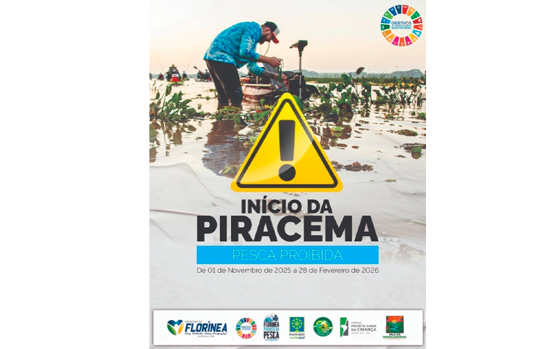 A Prefeitura de Florínea informa que está em vigor o período da Piracema, fase de proteção à reprodução natural dos peixes. A restrição segue de 1º de novembro de 2025 até 28 de fevereiro de 2026, período em que a pesca está proibida nos rios, represas e afluentes da região.