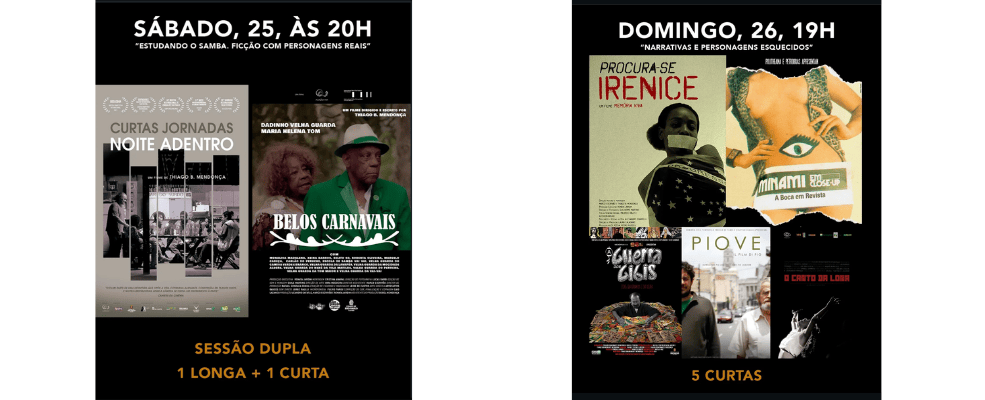 Neste sábado, às 20h, a sessão “Estudando o samba: ficção com personagens reais”, com classificação indicativa a partir de 12 anos, apresenta uma exibição dupla. O público poderá assistir ao curta “Curtas Jornadas Noite Adentro” e ao longa “Belos Carnavais”, que retrata a trajetória de sambistas paulistanos divididos entre trabalhos precários durante o dia e a busca por reconhecimento na música durante a noite.