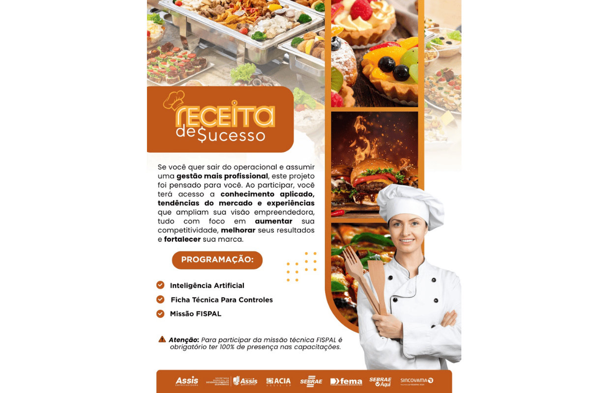 Empreendedores do setor de alimentação em Assis terão acesso a um novo ciclo de capacitações voltadas à gestão e inovação. O projeto Receita de Sucesso propõe uma formação prática, com foco em profissionalização, uso de tecnologia e melhoria de resultados no dia a dia dos negócios.