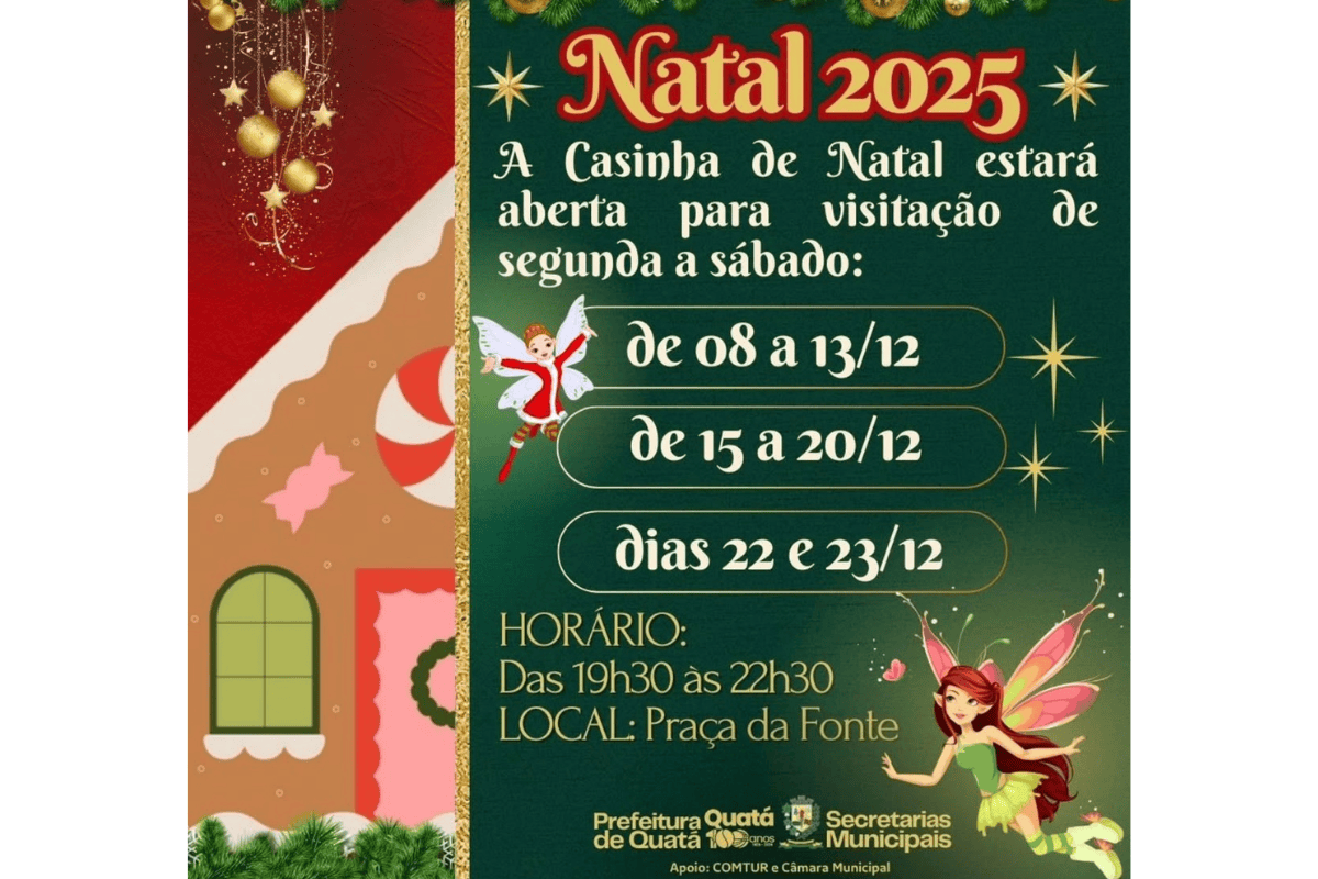A Casinha funcionará em três etapas: de 8 a 13 de dezembro, de 15 a 20 de dezembro e nos dias 22 e 23 de dezembro. A iniciativa reforça o propósito de oferecer atividades gratuitas e de fácil acesso à população durante o período de fim de ano.
