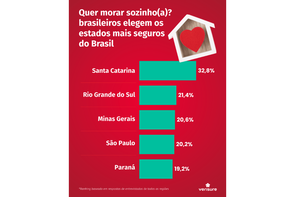 A decisão de morar sozinho tem ganhado força no Brasil e, junto com ela, cresce também a preocupação sobre onde viver com mais segurança e qualidade de vida. Um levantamento recente da Verisure mostra que Santa Catarina, Rio Grande do Sul e Minas Gerais lideram a preferência dos brasileiros quando o assunto é escolher estados considerados mais seguros para essa experiência.