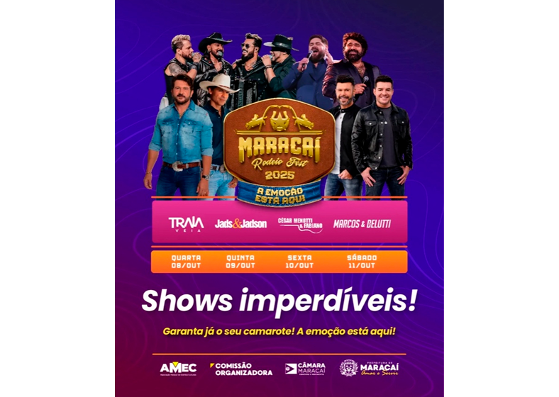 O evento é uma realização da Prefeitura de Maracaí, por meio da AMEC (Associação Maracaiense de Eventos e Cultura), com apoio da Câmara Municipal e da Comissão Organizadora, reafirmando o compromisso de fortalecer o turismo e a cultura local.