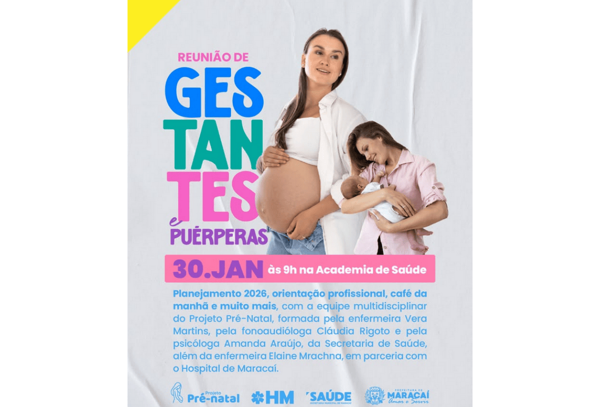 A Secretaria Municipal de Saúde de Maracaí realiza, na última sexta-feira do mês, dia 30 de janeiro, o primeiro encontro de 2026 voltado a gestantes e puérperas do município. A ação integra as atividades do Projeto Pré-Natal e tem como objetivo fortalecer o cuidado, o acolhimento e a orientação às mulheres durante a gestação e o período pós-parto.