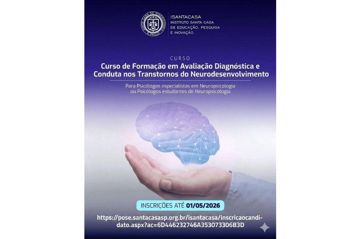 A Irmandade da Santa Casa de Misericórdia de São Paulo está com inscrições abertas para o Curso de Formação em Avaliação Diagnóstica e Conduta nos Transtornos do Neurodesenvolvimento. A capacitação é direcionada a psicólogos especialistas em Neuropsicologia e estudantes que buscam aprofundar a atuação clínica em uma área com demanda crescente na saúde mental.