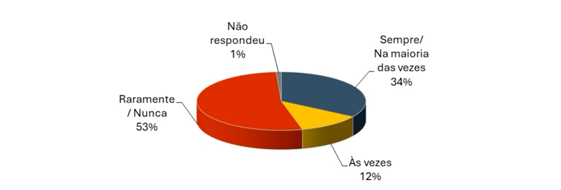 Apesar desse alto nível de alerta, 53% dos consumidores de bebidas alcoólicas admitem que raramente ou nunca checam a procedência do produto no momento da compra, seja analisando o selo, o rótulo, o lacre ou o registro de origem. Apenas 34% afirmam verificar sempre ou na maioria das vezes, e 12% fazem isso ocasionalmente.