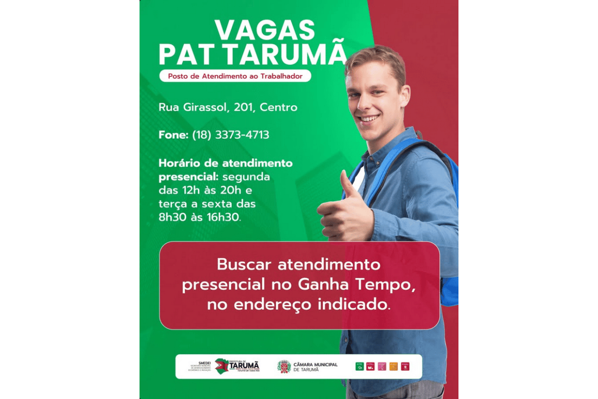 O PAT reforça que as vagas podem ser preenchidas a qualquer momento, por isso é importante que os interessados procurem atendimento o quanto antes para garantir participação nos processos seletivos.