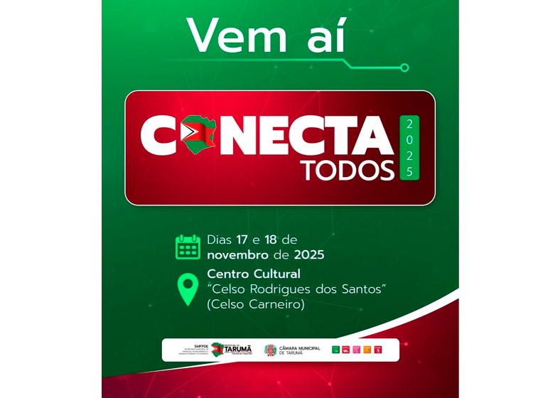 O município de Tarumã se prepara para sediar o Conecta Todos 2025, que acontece nos dias 17 e 18 de novembro, segunda e terça-feira, no Centro Cultural Celso Rodrigues dos Santos (Celso Carneiro). Faltando cerca de 15 dias para o evento, a expectativa é reunir representantes do poder público, empreendedores, estudantes e a comunidade em geral.