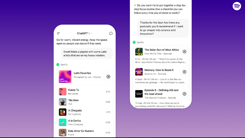 Com a nova funcionalidade, cada comando de texto pode se transformar em uma trilha sonora. É possível pedir, por exemplo, “uma playlist para estudar”, “as músicas latinas mais ouvidas” ou até “uma seleção de clássicos dos anos 2000 para uma road trip”. As faixas e episódios sugeridos podem ser abertos diretamente no app do Spotify, sem sair da conversa.