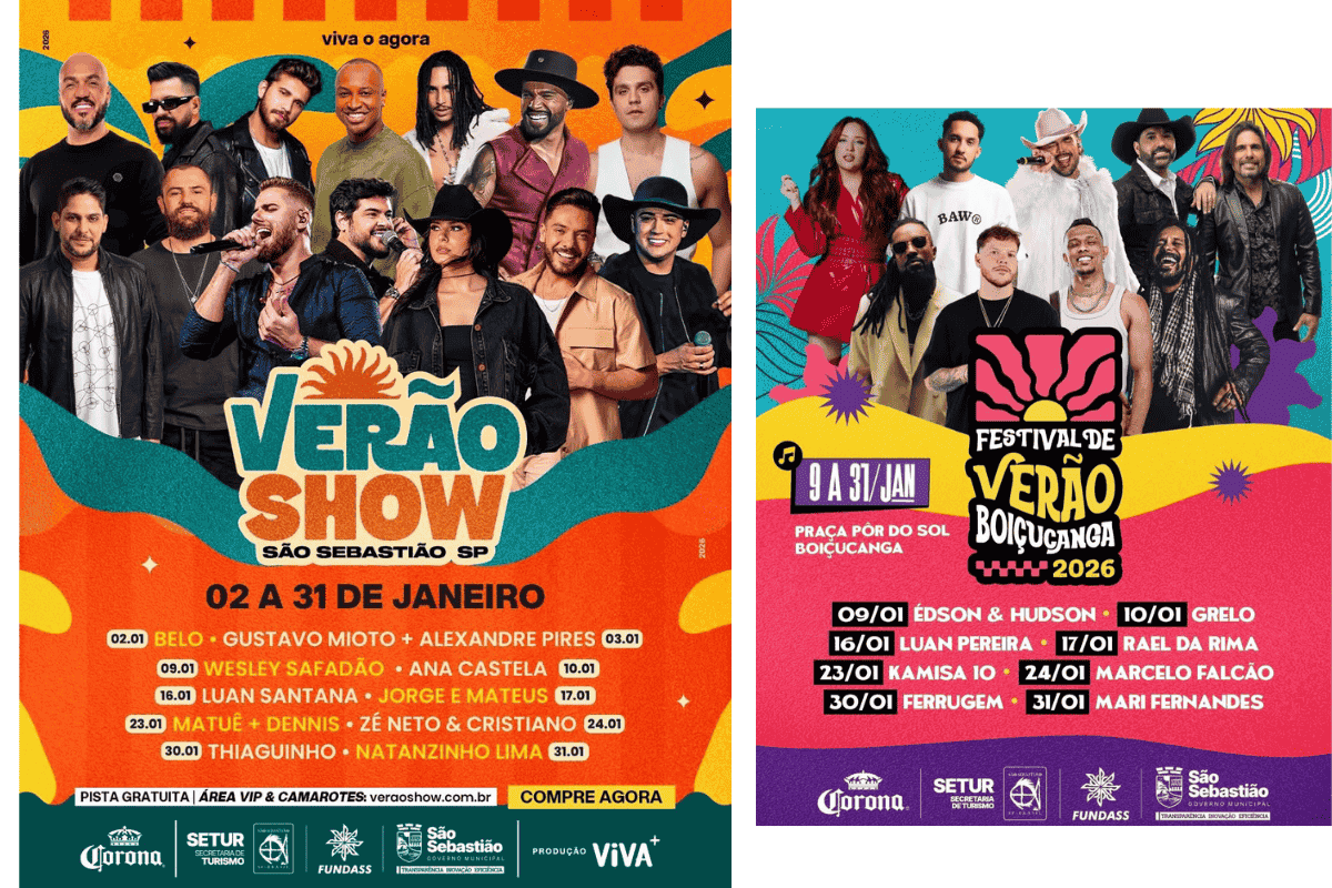 Quem planeja viajar para o Litoral Norte de São Paulo em janeiro encontrará, em São Sebastião e Boiçucanga, uma das maiores programações musicais do estado durante a alta temporada. Os municípios anunciaram uma agenda de shows considerada a mais extensa do litoral paulista, com apresentações gratuitas distribuídas entre o Centro e a Costa Sul da cidade ao longo de todo o mês.