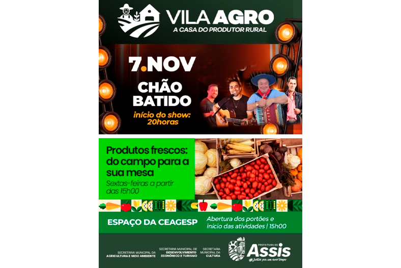 A Vila Agro é uma iniciativa da Prefeitura de Assis, por meio das secretarias de Agricultura e Meio Ambiente, Desenvolvimento Econômico e Turismo e Cultura, e tem como objetivo valorizar o produtor rural e fortalecer a economia local.