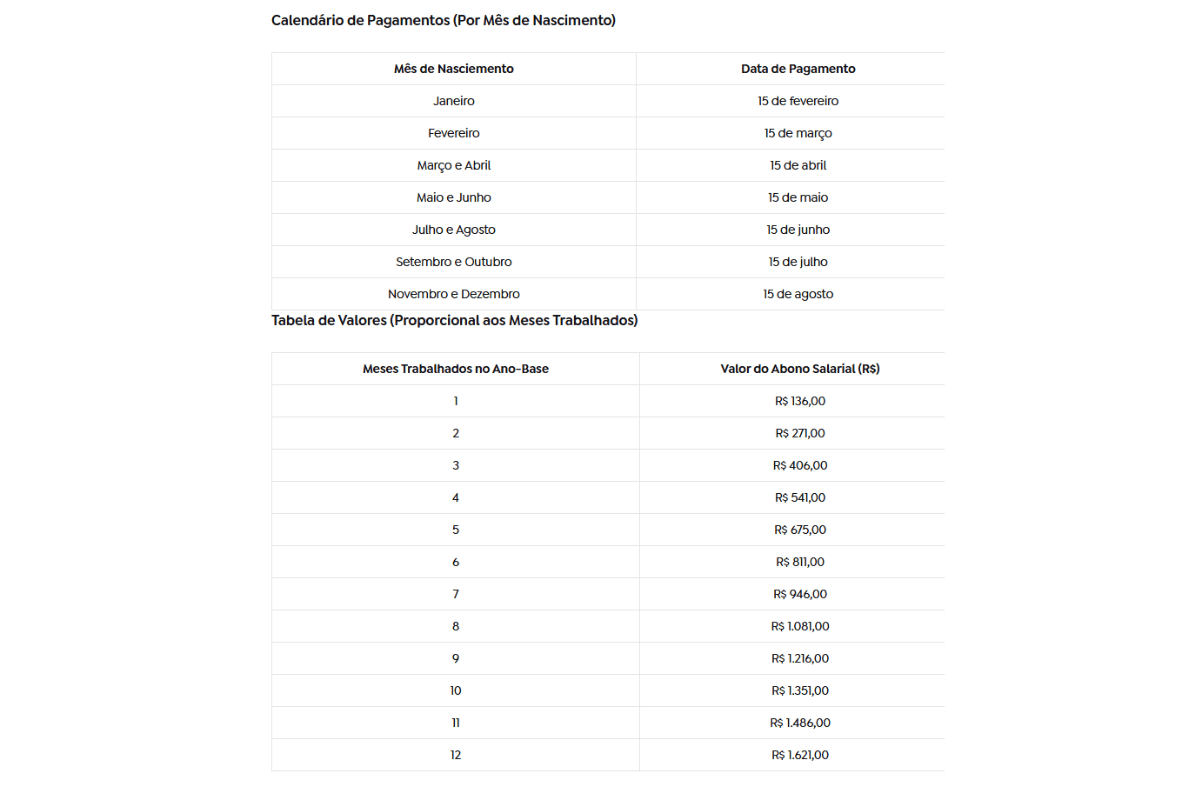 O valor pago é calculado à razão de 1/12 do salário mínimo vigente para cada mês trabalhado no ano-base. Quem trabalhou os 12 meses recebe o valor integral. Já quem trabalhou por menos tempo recebe de forma proporcional, desde que cumpra todos os requisitos legais e tenha os dados corretamente informados pelo empregador no eSocial dentro do prazo.