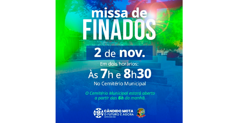 A Prefeitura de Cândido Mota divulgou a programação especial para o Dia de Finados, celebrado neste domingo, 2 de novembro de 2025. As missas na Capela da Ressurreição, localizada no Cemitério Municipal, acontecem em dois horários: às 7h e às 8h30.