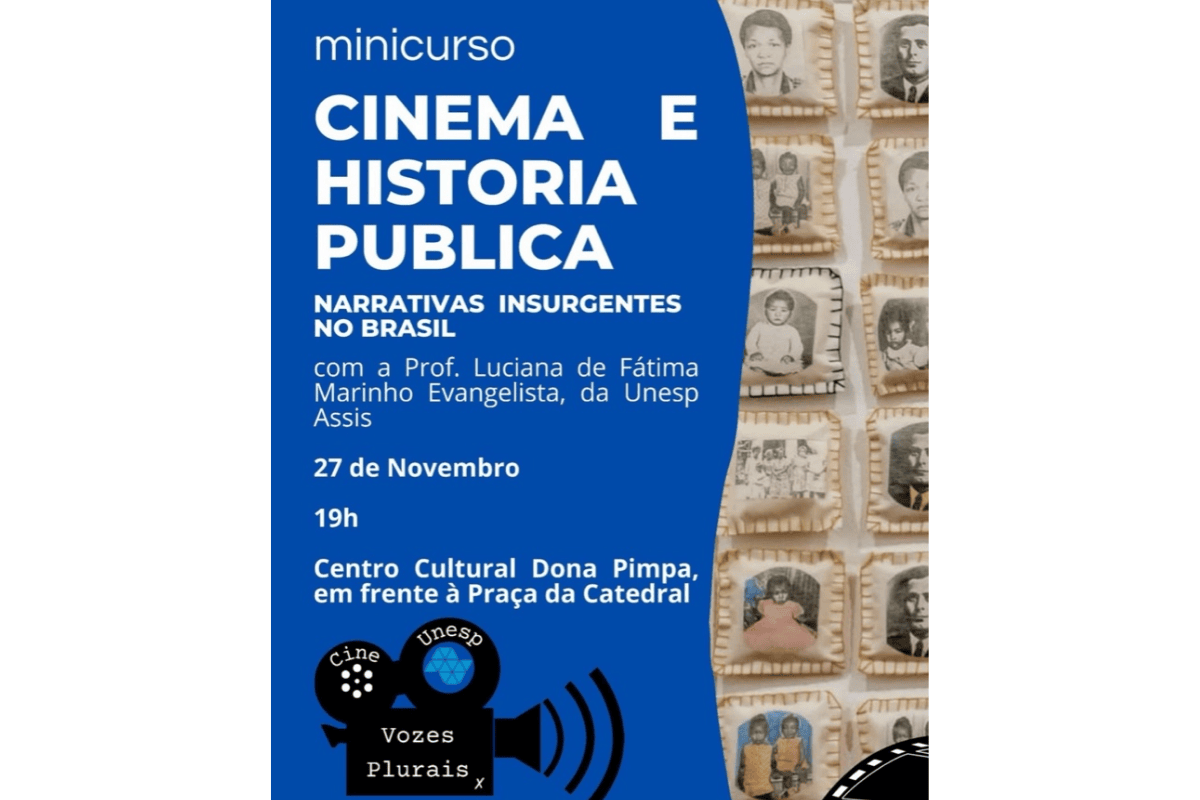 A Secretaria Municipal de Cultura realiza nesta quinta-feira, 27 de novembro, às 19h, o minicurso Cinema e História Pública: narrativas insurgentes no Brasil, no Centro Cultural Dona Pimpa, em frente à Praça da Catedral. A atividade é gratuita e aberta ao público, e propõe uma imersão no cinema como campo simbólico de disputa, produção de memória e reconfiguração das imagens do país.