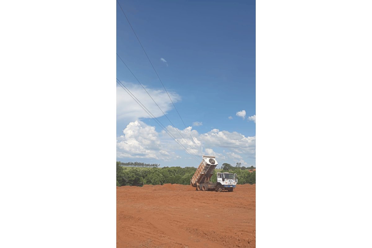 Outro cuidado importante envolve o uso de caminhões basculantes. A Energisa orienta que a caçamba nunca seja levantada diretamente sob a rede elétrica. Quando necessário, o ideal é descarregar o material em um ponto próximo ao local previsto, evitando o risco de contato com os cabos energizados.