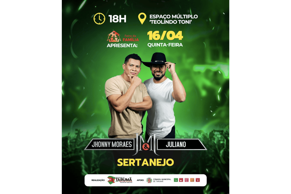 A principal atração da noite será o show da dupla sertaneja Jhonny Moraes & Juliano, que sobe ao palco com repertório voltado ao público que aprecia música sertaneja. A proposta é oferecer uma noite de entretenimento para todas as idades, integrando cultura e convivência comunitária.