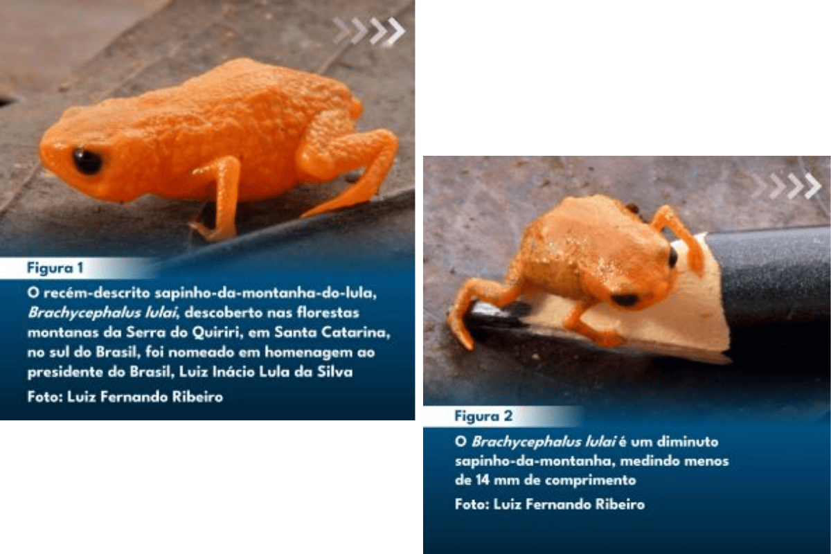 Pesquisadores liderados pelo professor Marcos Bornschein, do Instituto de Biociências da Unesp, no câmpus do litoral paulista, descreveram uma nova espécie de anfíbio da Mata Atlântica e a batizaram de Brachycephalus lulai, em homenagem ao presidente Luiz Inácio Lula da Silva. O estudo foi publicado na última quarta-feira, dia 10, na revista científica PLOS ONE, e resulta de quase uma década de pesquisas em áreas de difícil acesso do Sul do Brasil.