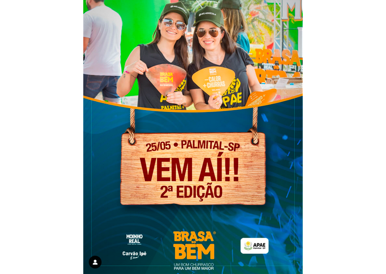 A 2ª edição do Brasa do Bem promete agitar Palmital no próximo 25 de maio, com um evento gastronômico solidário que vai reunir amantes do churrasco e apoiar a APAE de Palmital. Das 12h às 17h, o evento será realizado no espaço da APAE (Rua Messias Cândido São José, 196) e oferecerá aos participantes a oportunidade de saborear mais de 15 tipos de carnes e cortes, além de contribuir com uma grande causa.